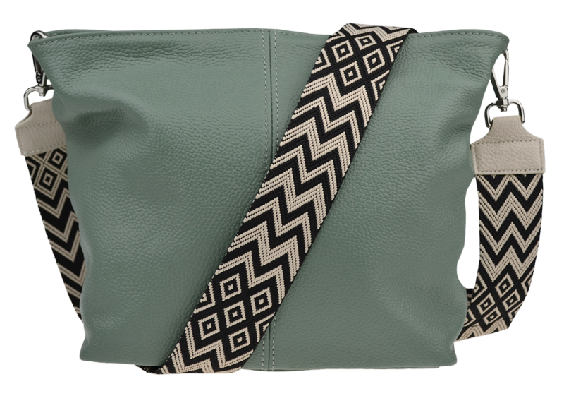 Elegantná a praktická tyrkysová kabelka nositeľná cross-body (krížom) alebo v ruke. Táto kožená kabelka je uzatvárateľná na zips. Vnútri kabelky nájdeme na bočnej stene kapsu na zips a priehradky pre mobil či kľúče. Hĺbka jej dna je 13 cm. Kabelka má navyše nastaviteľný popruh s maximálnou dĺžkou cca 120 cm. Ďalšie farebné varianty kabelky nájdete tu.